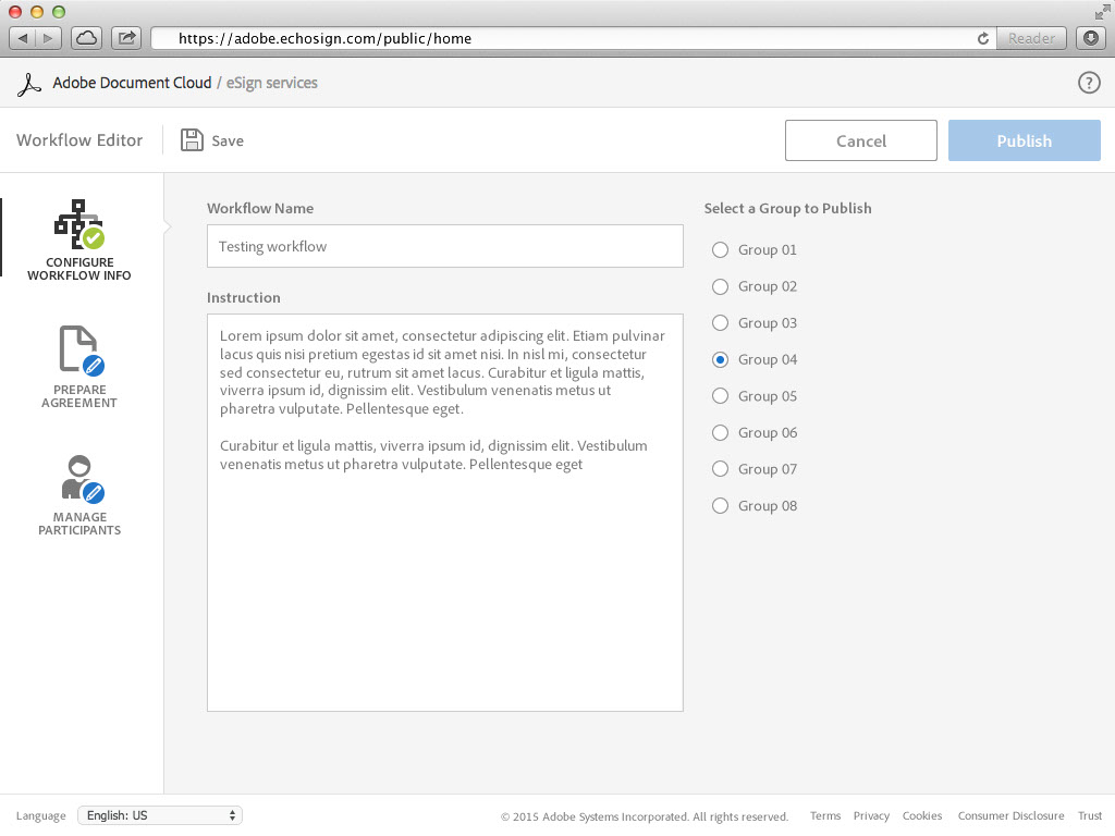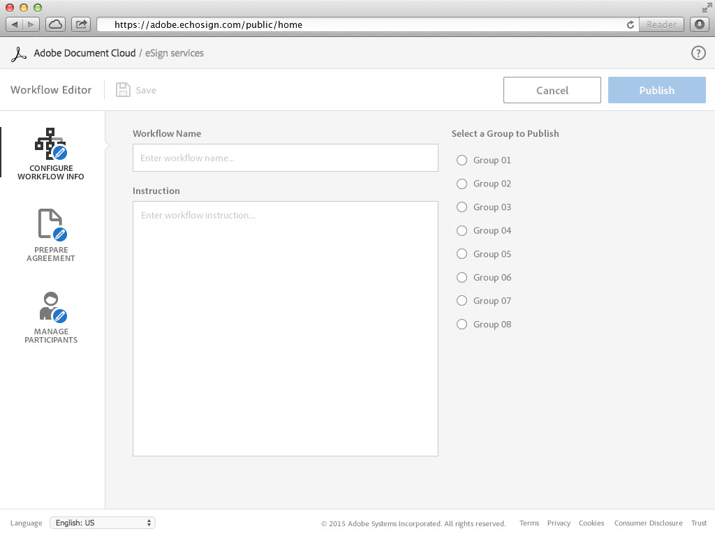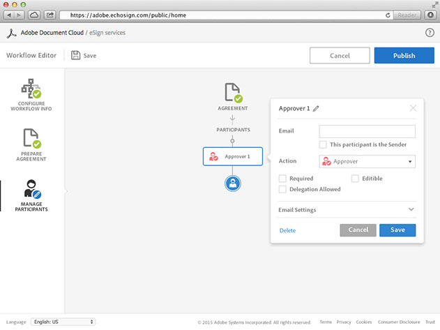 舊的Adobe Sign工作流程必須由客戶管理中心使用難懂的XML語法來編寫。Adobe Sign希望能夠製作出一套介面系統讓客戶能夠輕鬆的建立與管理工作流程。